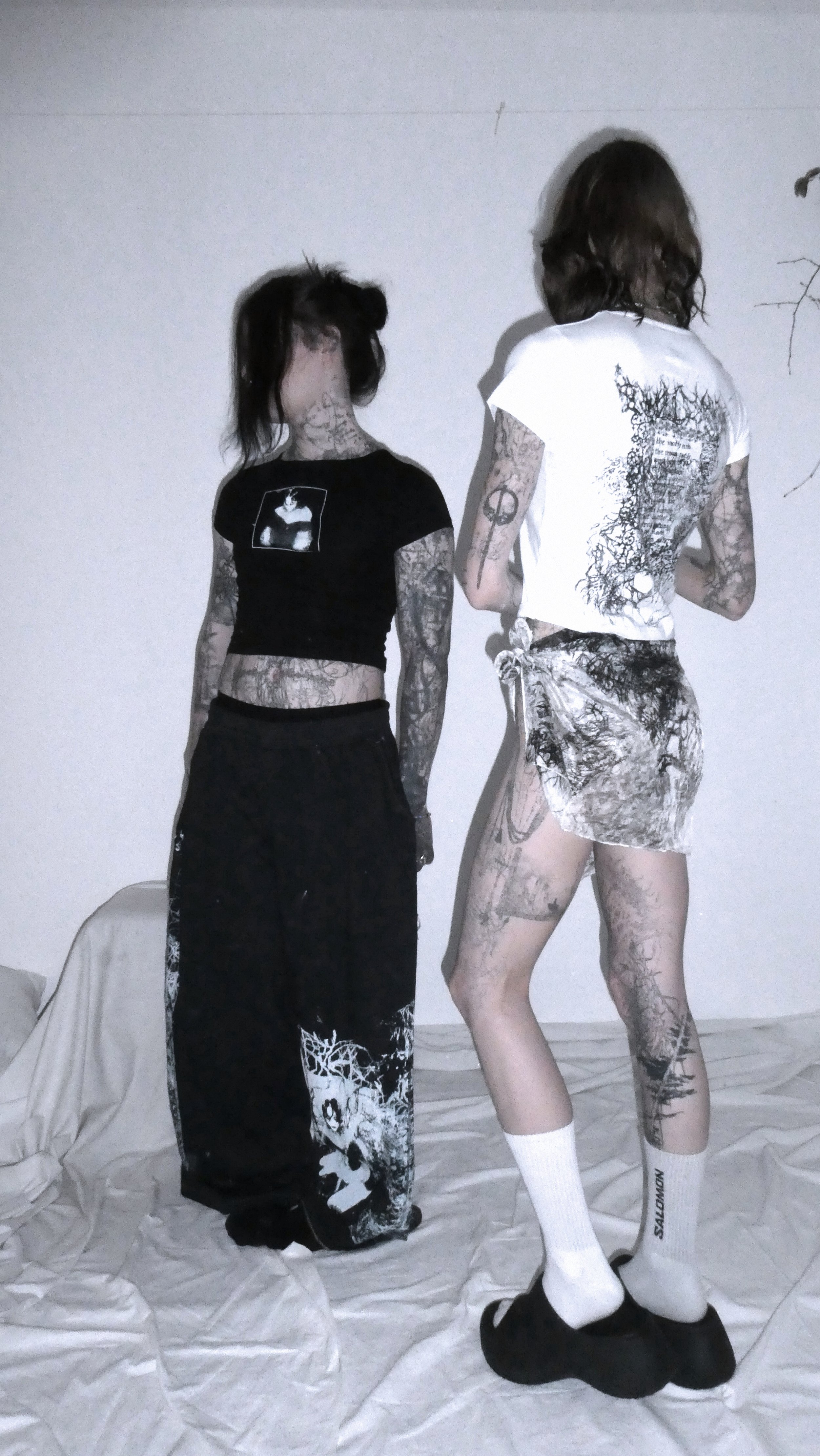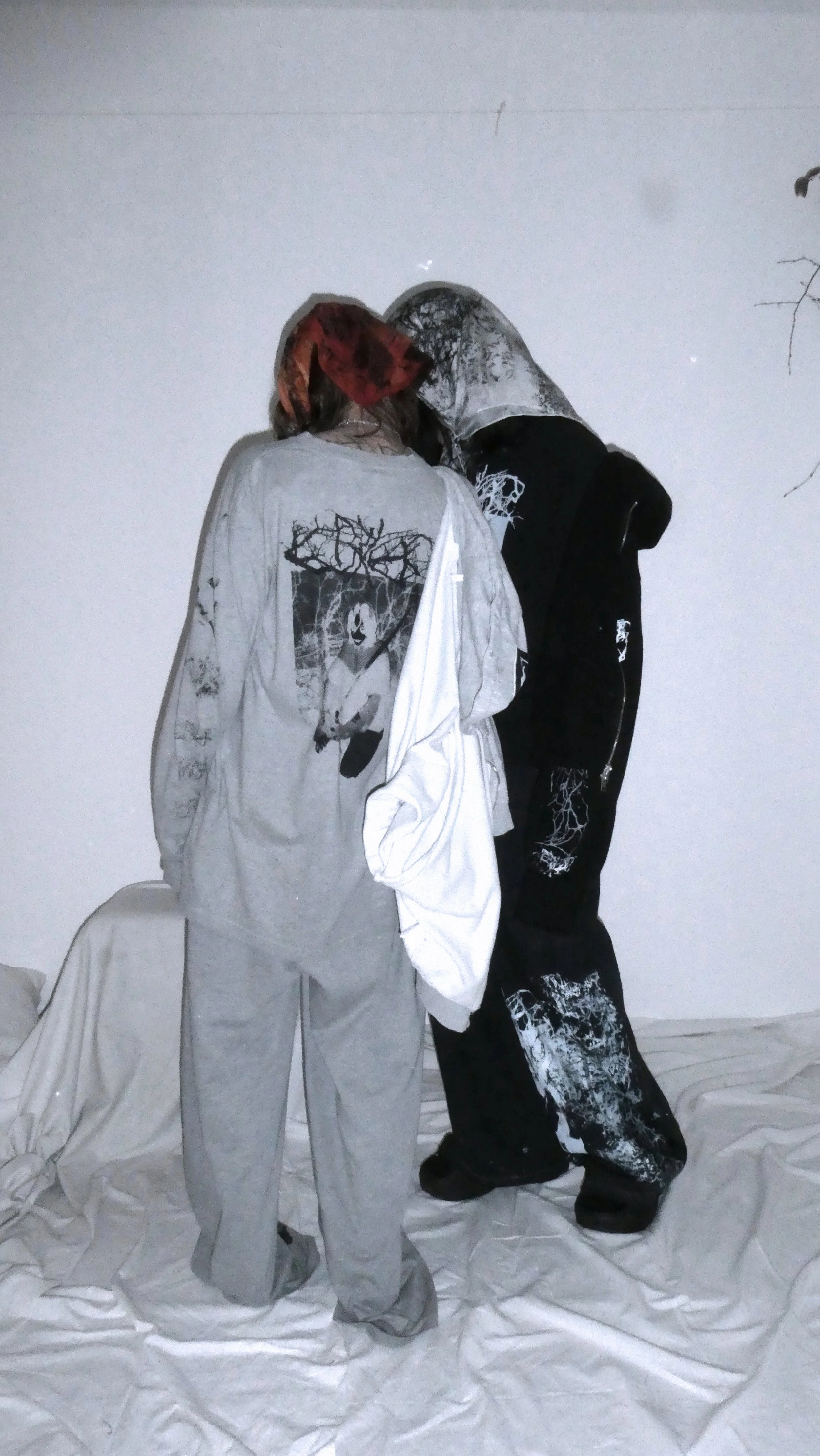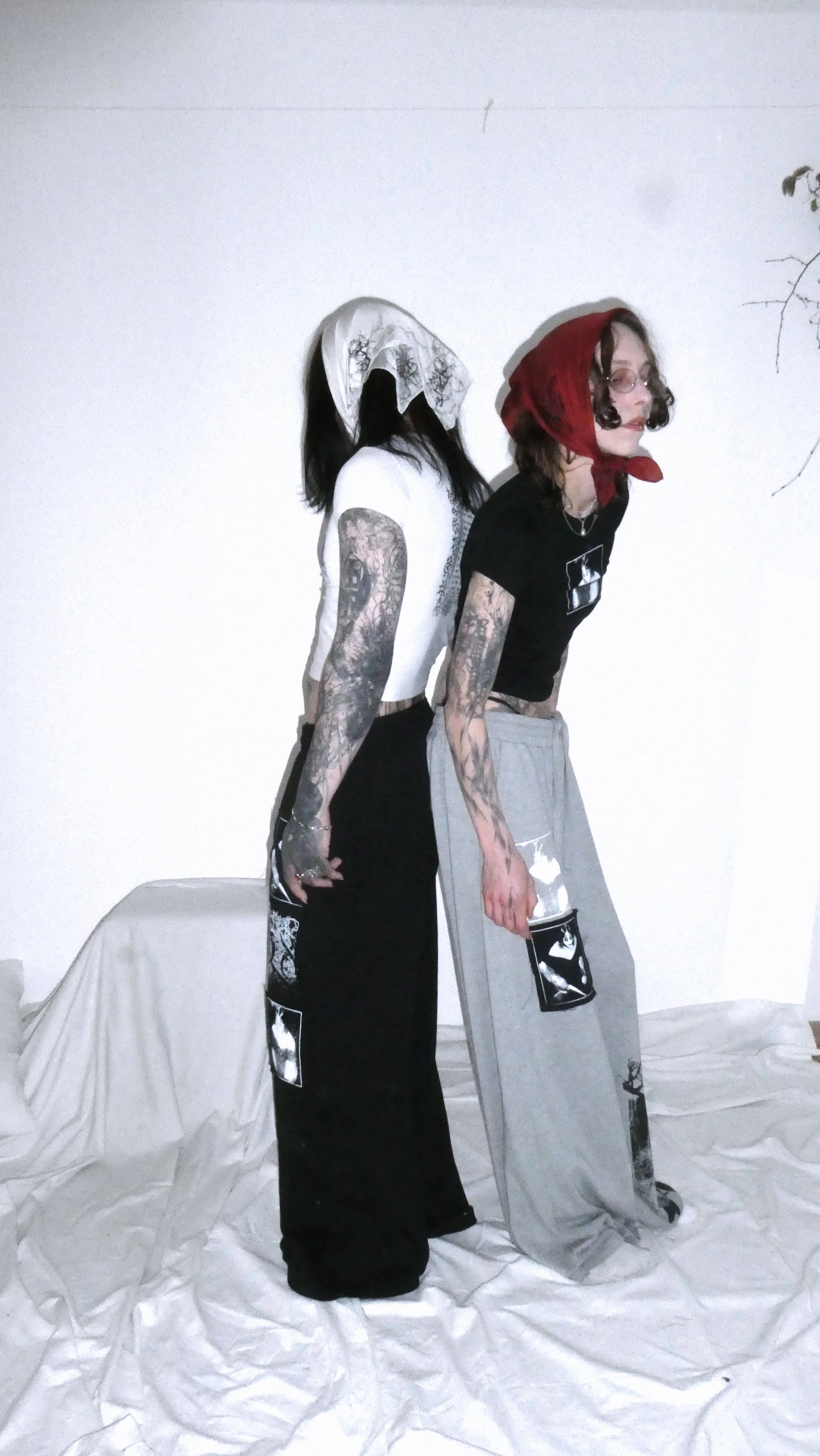 modded vintage - every item is screen printed by hand on my livivng room floor on second hand mostly cotton clothing. every piece has its own shape and charecter and design printed on it, embrasing flaws and imperfection, cause perfection is extremely boring